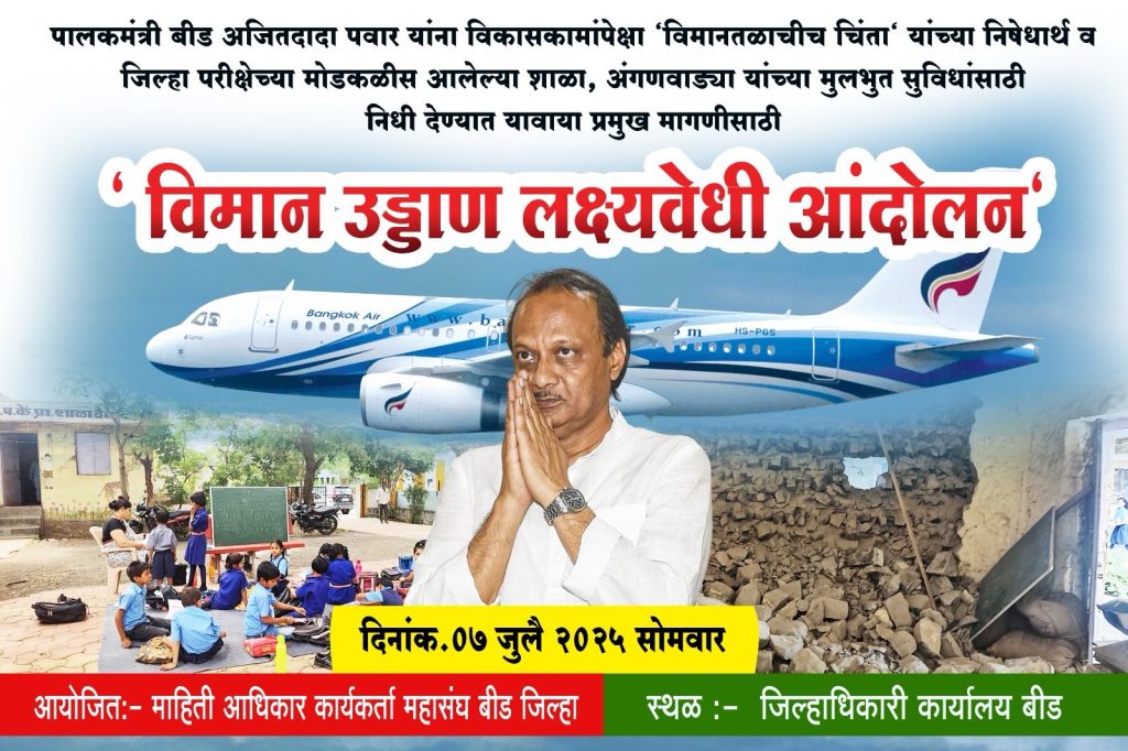पालकमंत्री अजितदादा, बीडच्या विमानतळाइतकीच जिल्हा परिषदेच्या मोडकळीस आलेल्या धोकादायक शाळांची काळजी घ्या – जिल्हाधिकारी कार्यालयासमोर ‘विमान उड्डाण’ लक्ष्यवेधी आंदोलन