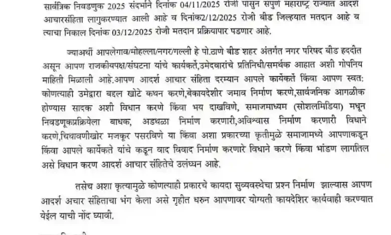निवडणूक आयोगाच्या अधिकारांवर अतिक्रमण? सदर नोटीसमध्ये ‘आदर्श आचारसंहितेचे उल्लंघन’ होण्याची शक्यता वर्तवण्यात आली आहे. या मुद्द्यावर डॉ. ढवळे यांनी अत्यंत महत्त्वाचा तांत्रिक मुद्दा उपस्थित केला. ते म्हणाले की, “आचारसंहितेचा भंग झाला आहे की नाही, हे ठरवण्याचा अंतिम अधिकार केवळ निवडणूक आयोगाला आहे. पोलिस प्रशासन स्वतःहून आचारसंहितेचे अर्थ लावून कारवाई करू शकत नाही. त्यामुळे ही नोटीस निवडणूक आयोगाच्या अधिकारक्षेत्रात केलेला अनधिकृत हस्तक्षेप आहे.”