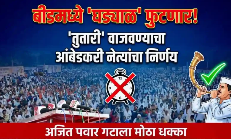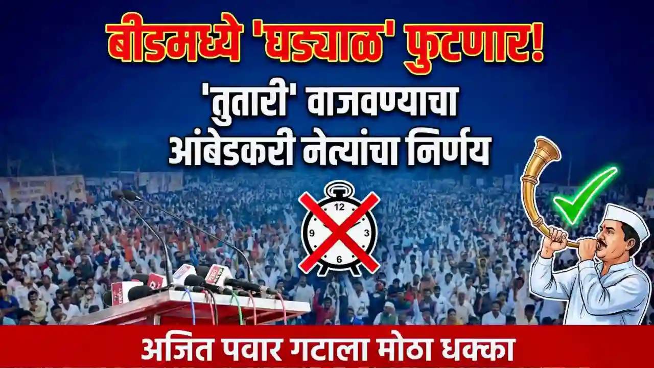 बीड, २४ नोव्हेंबर (विशेष प्रतिनिधी): बीड नगरपरिषदेच्या निवडणुकीच्या तोंडावर शहरातील राजकीय वातावरण ढवळून निघाले आहे. मागील काही काळापासून उमेदवारी डावलल्यामुळे नाराज असलेल्या आंबेडकरी चळवळीतील प्रमुख नेत्यांनी आणि कार्यकर्त्यांनी आता आक्रमक भूमिका घेतली आहे. रविवारी पार पडलेल्या एका निर्णायक बैठकीत, सत्ताधारी गटाच्या ‘घड्याळ’ चिन्हाचा पराभव करून राष्ट्रवादी काँग्रेस पक्ष (शरदचंद्र पवार) यांच्या ‘तुतारी’ चिन्हासह उमेदवार स्मिता विष्णू वाघमारे यांना विजयी करण्याचा एकमुखी निर्णय घेण्यात आला आहे. या निर्णयामुळे बीडमधील राजकीय गणिते पूर्णपणे बदलली असून, याचा मोठा फटका अजित पवार गट आणि भाजप युतीला बसण्याची शक्यता निर्माण झाली आहे.
