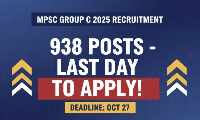 Read More »महाराष्ट्र लोकसेवा आयोगाच्या (MPSC) गट-क सेवा संयुक्त पूर्व परीक्षा २०२५ साठी अर्ज करण्याची अंतिम मुदत आज २७ ऑक्टोबर रोजी संपत…